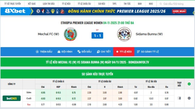 Các loại tỉ lệ kèo như kèo châu Á, châu Âu, tài xỉu, kèo phạt góc… đều được hiển thị rõ ràng, chính xác.