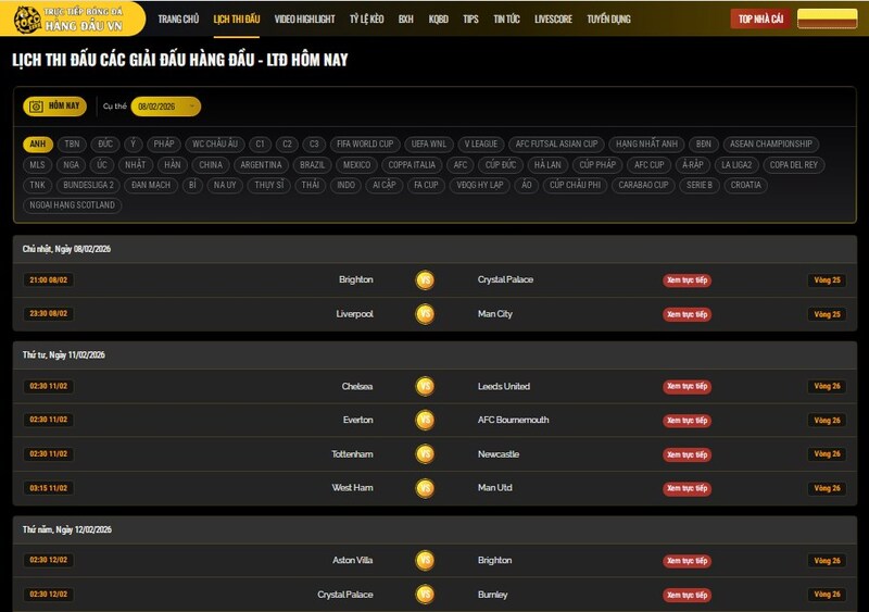 Một điểm nữa khiến mình gắn bó là mục lịch thi đấu được làm rất chỉn chu. Mình hay vào xem lịch thi đấu ngoại hạng anh để biết đội ruột đá giờ nào, đối thủ ra sao. Thông tin được sắp xếp theo từng giải, từng ngày nên chỉ cần liếc qua là đã nắm hết lịch tối nay có những trận gì. Nhờ vậy mình không còn cảnh sát giờ mới cuống cuồng đi tìm link hay hỏi bạn bè. Với những tuần có nhiều trận chồng chéo, mục lịch này đúng nghĩa cứu cánh, giúp mình chủ động sắp xếp công việc để không lỡ khoảnh khắc quan trọng.