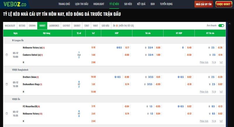 Vebo TV tổng hợp kèo từ nhiều nhà cái lớn, cập nhật từng phút, từng biến động nhỏ nhất. Kèo châu Á, châu Âu, tài xỉu, kèo góc, kèo thẻ… tất cả đều được trình bày rõ ràng, kèm phân tích ngắn gọn từ đội ngũ chuyên gia. Tôi không còn phải đoán mò hay hoang mang giữa biển kèo nữa, mọi thông tin đã được giải mã trực quan, logic, dễ hiểu.