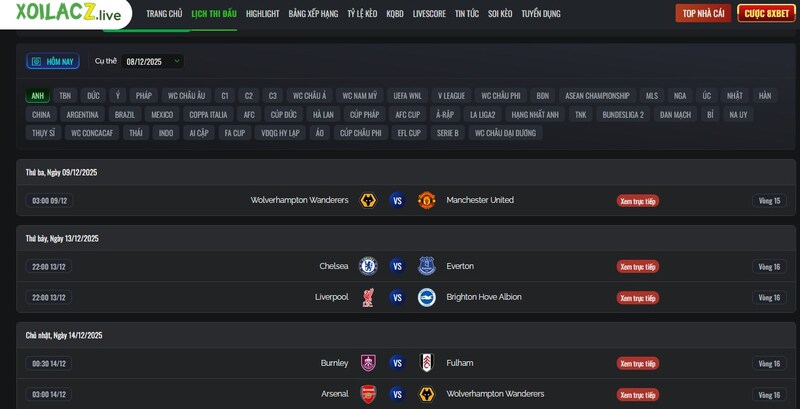 Ngoài Premier League, Xoilac TV còn cập nhật lịch thi đấu: